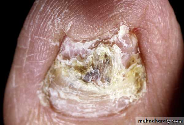 Yeasts get entry into the sub-cuticular area causing more inflammation and more cuticular detachment.