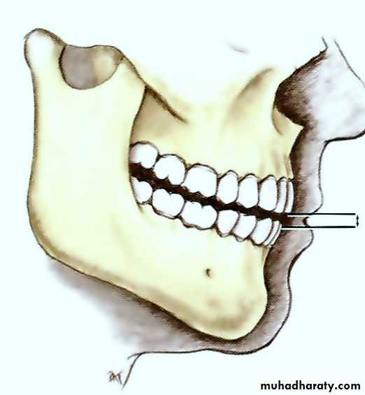 Third:• Vertical overbite of about one third the clinical crown height of the mandibular central incisors.