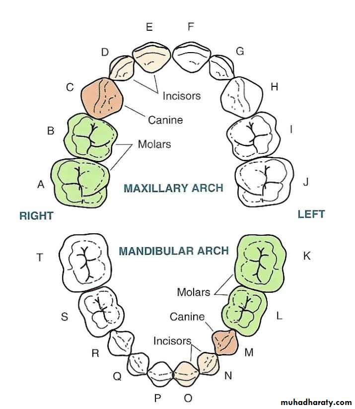 At approximately 13 years of age all permanent teeth except third molars are fully erupted.Features of Permanent Dentition