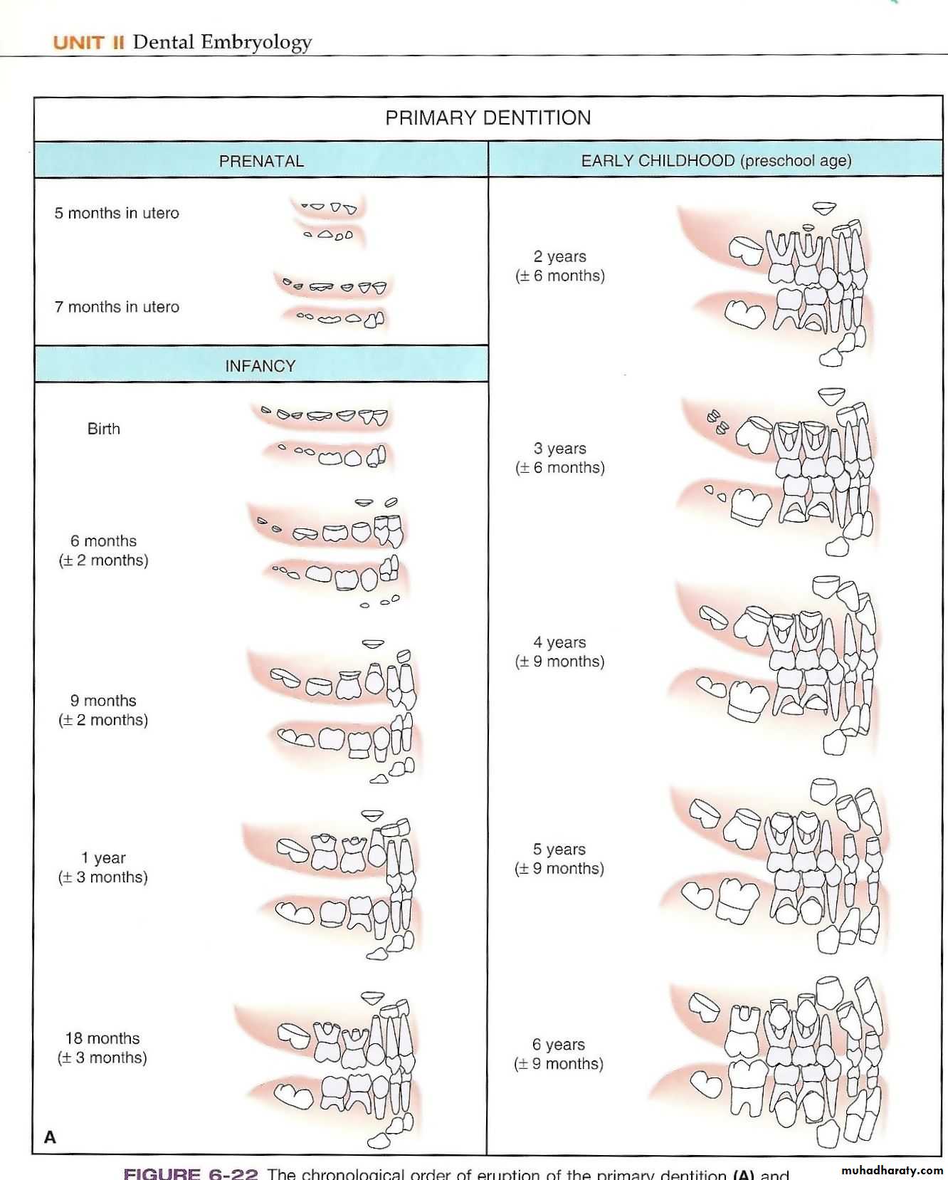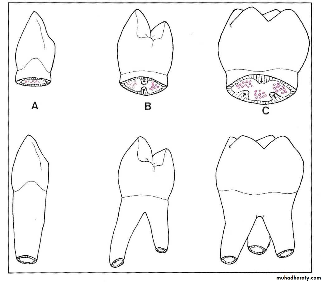 The premolars develop below the diverging roots of the deciduous molars.The Permanent Dentition