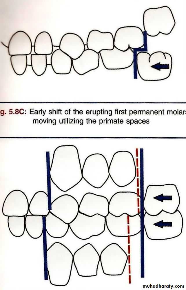 • Increase in anterior length of the dental arches: as Permanent incisors erupt labial to the primary incisors to obtain an added space of around 2-3 mm.