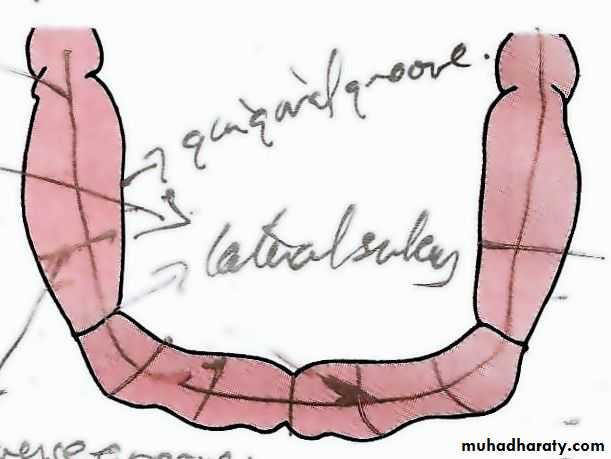 The gum pad soon gets segmented by a groove called transverse groove, & each segment is a developing tooth site.The pads get divided into ‘labio-buccal’ & ‘lingual portion’, by a dental groove.