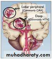 1. Deep cerebral hemorrhage(putamin & thalamus):produces a contralateral sensorimotor deficit2. Lobar hemorrhage:the frontal, parietal, temporal, and occipital lobes. Symptoms and signs vary according to the location