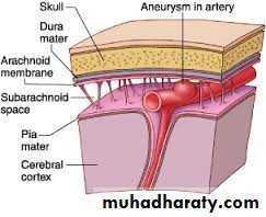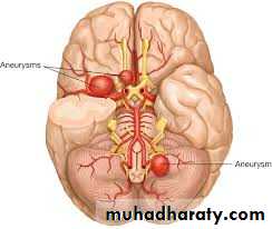 Cerebral artery aneurysms are most commonly congenital “berry” aneurysms, which result from developmental weakness of the vessel wall, especially at sites of branching. These aneurysmal dilatations arise from intracranial arteries about the circle of Willis at the base of the brain , Other congenital abnormalities, including polycystic kidney disease and coarctation of the aorta, may be associated with berry aneurysms. AVMs consist of abnormal vascular communications .Clinical Findings