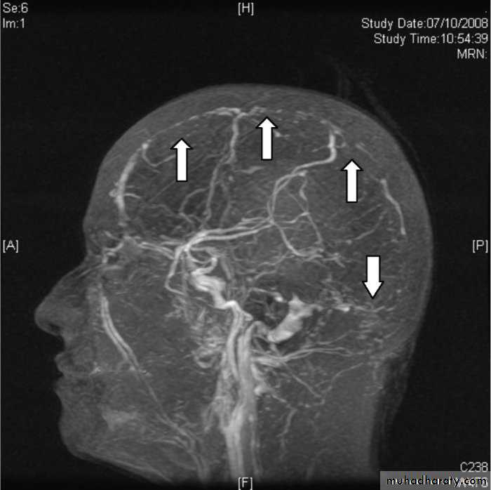 Thrombosis of the cerebral veins and venous sinuses (cerebral venous thrombosis) is much less common than arterial thrombosis.Cerebral venous sinus thrombosis usually presents with symptoms of raised intracranial pressure such as headach and papillodema ,also seizures , focal neurological symptoms and sometime coma . The clinical features vary according to the sinus involved