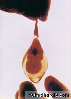 the placenta is a definite structures, and if happen after this time the process of abortion is similar to that of labour. Bleeding and painful contractions are followed by dilatation of cervix, rupture of membranes and expulsion of fetus and placenta. If a conceptus is expelled, normal uterine involuation follows, but frequently part of placenta is retained with some blood clots.Clinical varieties of miscarriage (spontaneous abortion):