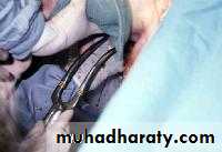 Piper forceps application: Pipers are specialized forceps used only for the aftercoming head of a breech presentation. They are used to keep the head flexed during extraction of the fetal head. An assistant is needed to hold the infant while the operator gets on one knee to apply the forceps from below.