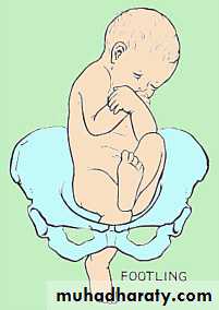 Footling or incomplete (10%) - One or both hips extended, foot presenting