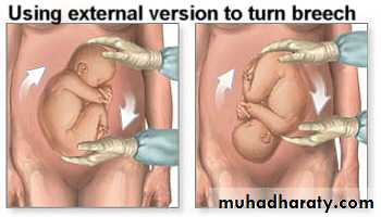 Is a procedure to turn the breech fetus to a vertex presentation through external uterine manipulation ,in hospital ,under US guidance.