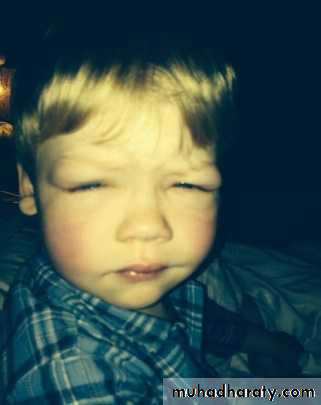 Children usually present with mild edema, which is initially noted around the eyes and in the lower extremities.