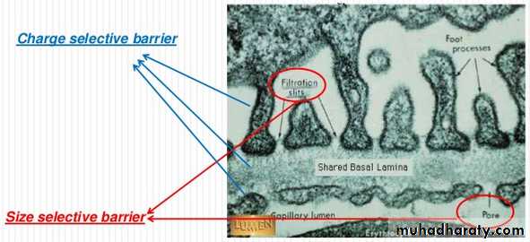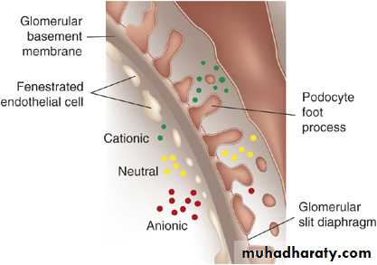 under normal conditions, molecules greater than 42 Å in diameter are unable to cross the filtration barrier.Charge selectivity: