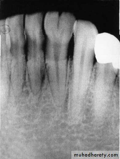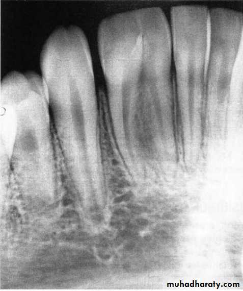 Pulp pathosis of the primary molars in the form of lamina dura breakdown occurs in the furcation areas while in the permanent teeth occurs at the apical area(apex).