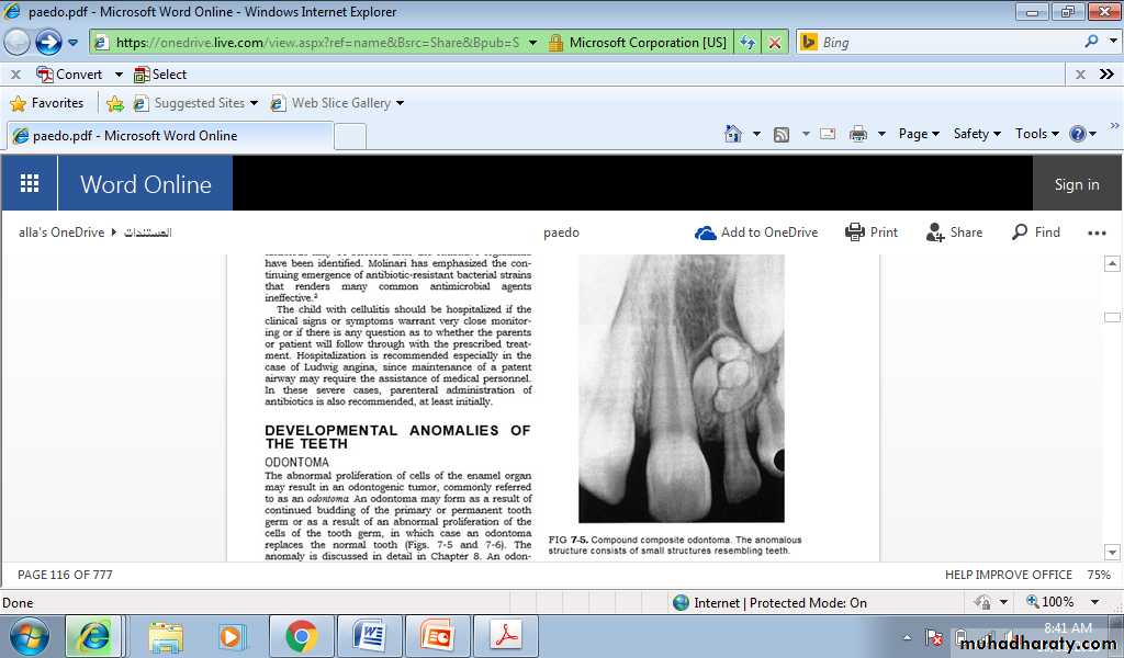 OdontomaThe abnormal proliferation of cells of the enamel organ may result in an odontogenic tumor, commonly referred to as an odontoma.