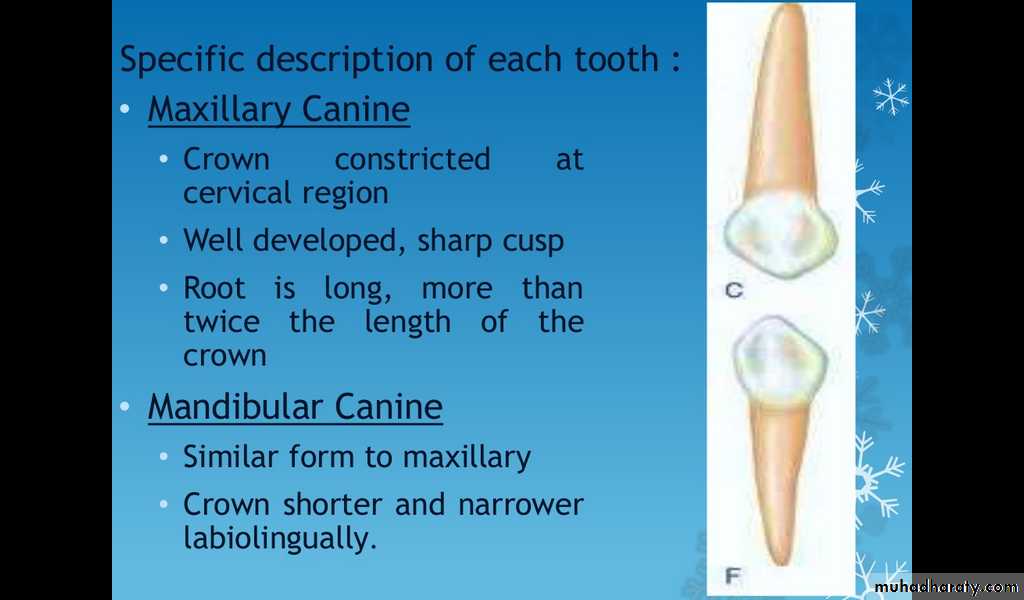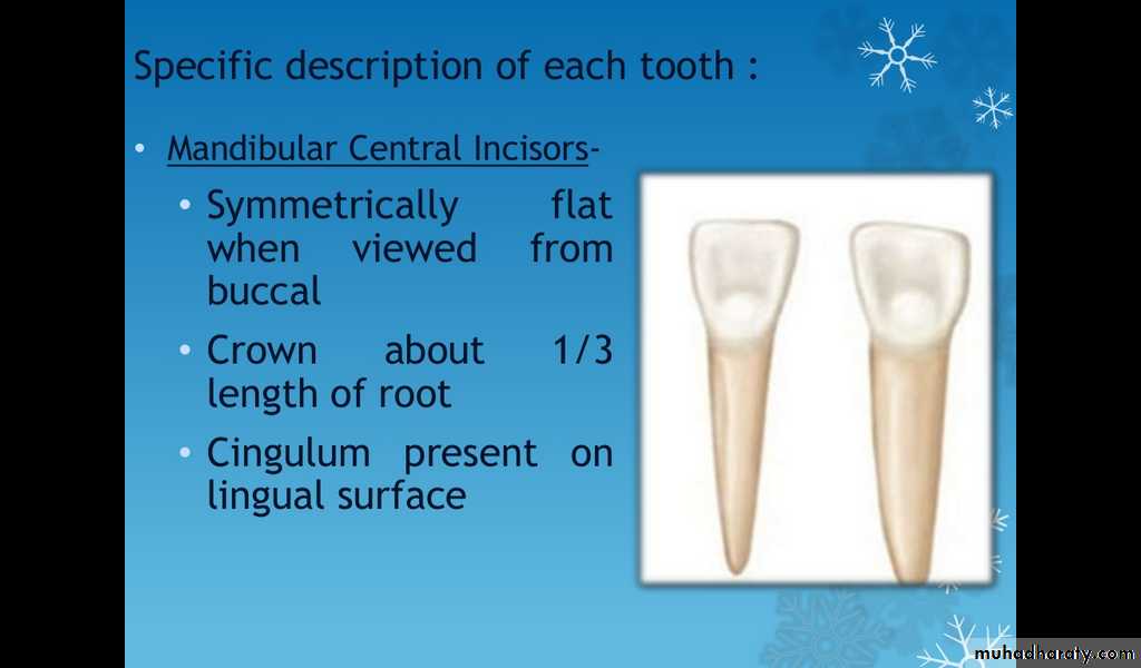 Similar form to maxilliaryCrown shorter and narrower labiolingually