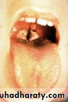 Cutaneous form common in tropical areas ,patient presented with ulcer surrounded by erythema and covered by membrane .