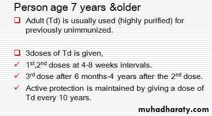 3. Protection of highly risk group ; They should be fully immunized and receive a booster dose every 10 years.