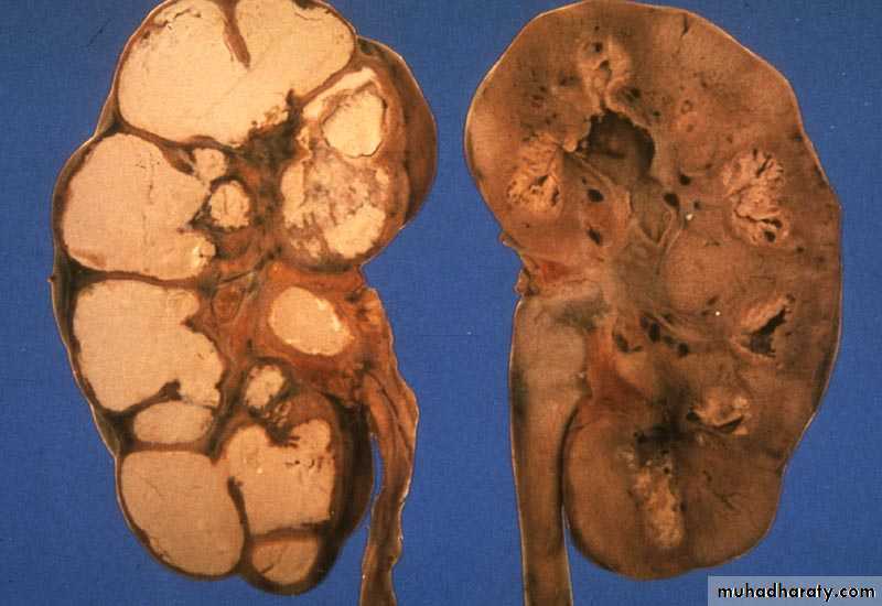Renal destruction, calcification.