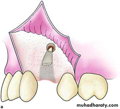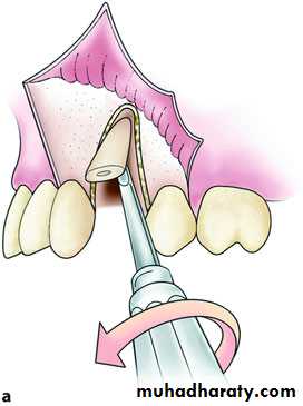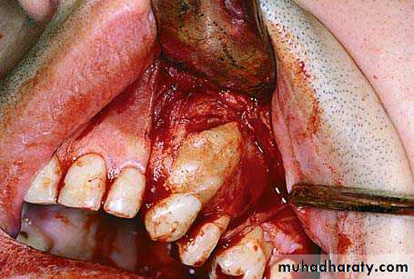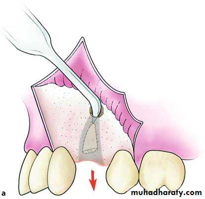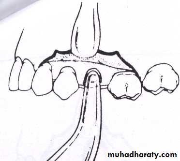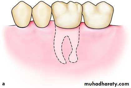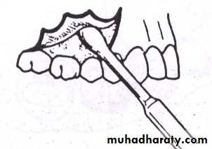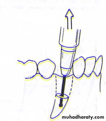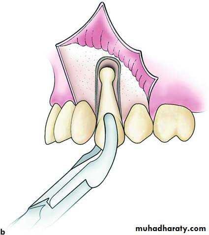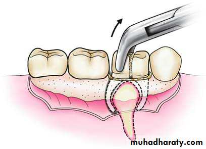 1- Root Extraction After Removal of Part of the Buccal BoneWhen the tooth is single-rooted and the level of the root is below the margin of alveolar bone, an L-shaped incision is made the flap is reflected