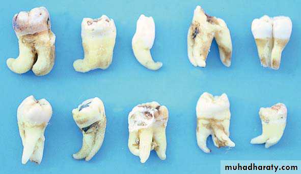 presenting large bulbous roots3- Teeth with dilaceration of root tips