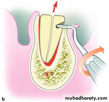 5/ By straight elevator using wedge tech.Policy for leaving root fragment