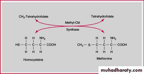 The 5-methyltetrahydrofolate is converted to tetrahydrofolate by the cobalamin-dependent enzyme methionine synthase before it can be converted to the polyglutamate form and take part in the other folate-dependent enzymatic reactions