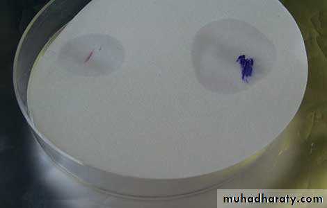 The neisseriae produce oxidase and give positive oxidase reactions. When bacteria are spotted on a filter paper soaked with tetramethylparaphenylenediamine hydrochloride (oxidase), the neisseriae rapidly turn dark purple.