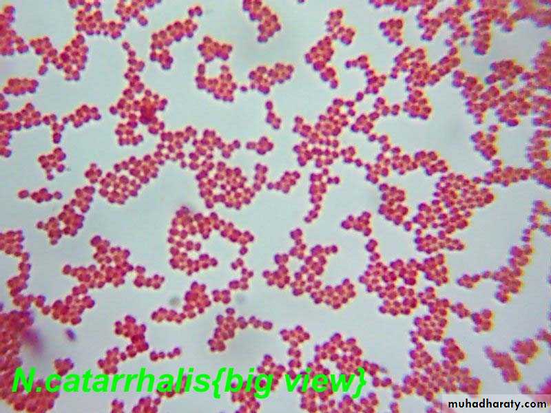 The family Neisseriaceae includes the genera Neisseria, Kingella …etc.The Neisseriae are gram-negative cocci that usually occur in pairs.