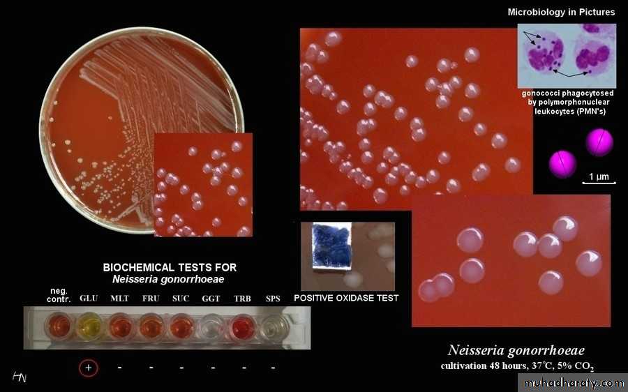 Gonococci oxidize only glucose and differ antigenically from the other neisseriae.Gonococci usually produce smaller colonies than those of the other neisseriae.