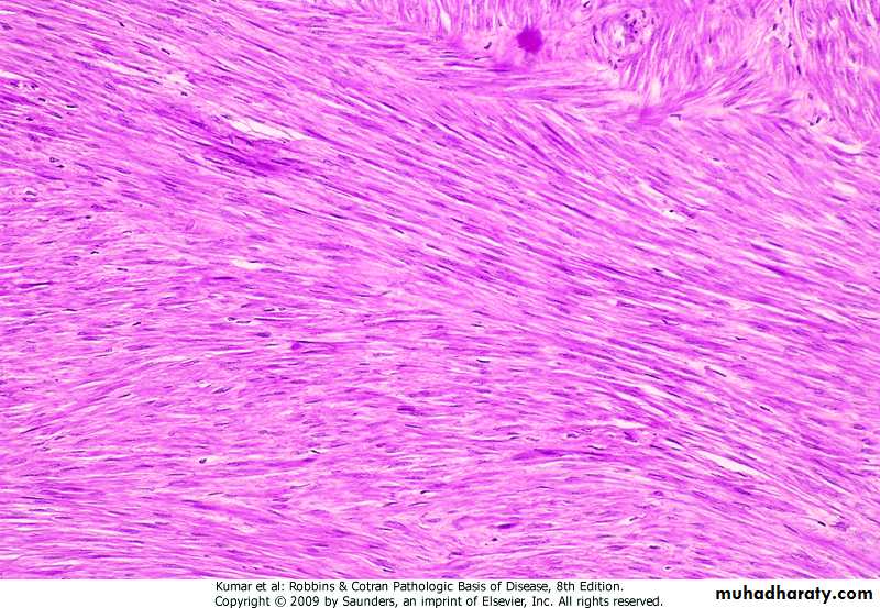 Benign Neoplasms.have innocent microscopic & gross features .remain localized.amenable to local surgical removal.patient generally survives.in mesenchymal neoplasms, oma is attached to cell of origin (fibroma, chondroma, osteoma, leiomyoma, rhabdomyoma)