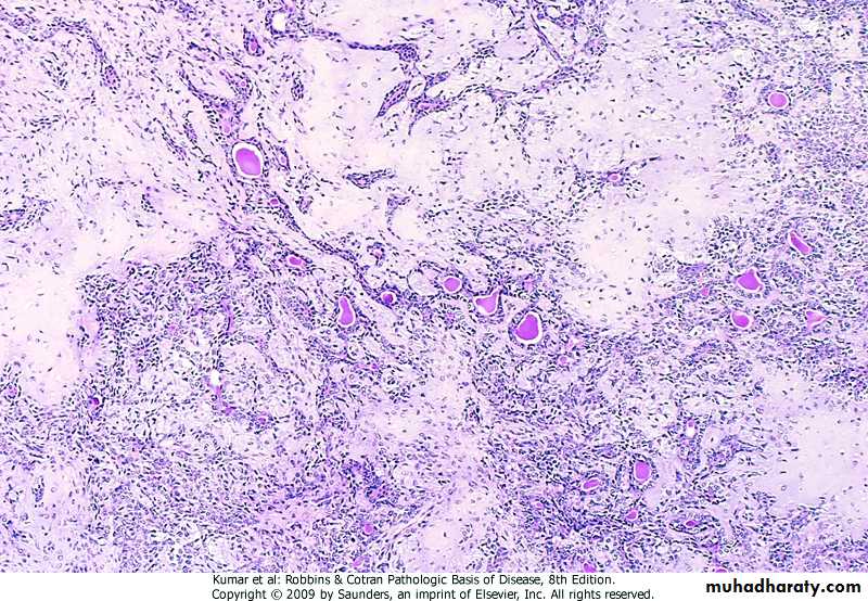 .neoplasms have 2 components -parenchyma (neoplastic cells) -stroma (supportive connective tissue) desmoplasia .is a term applied when a stroma is densely collagenous
