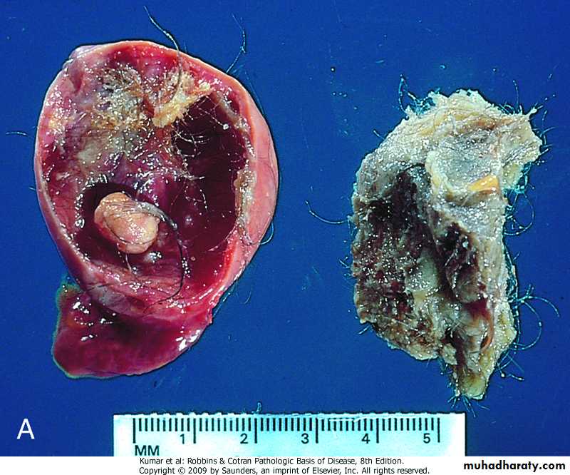 Teratoma.neoplasm arising from more than one germ layer (totipotent cell)Ovary, teratoma