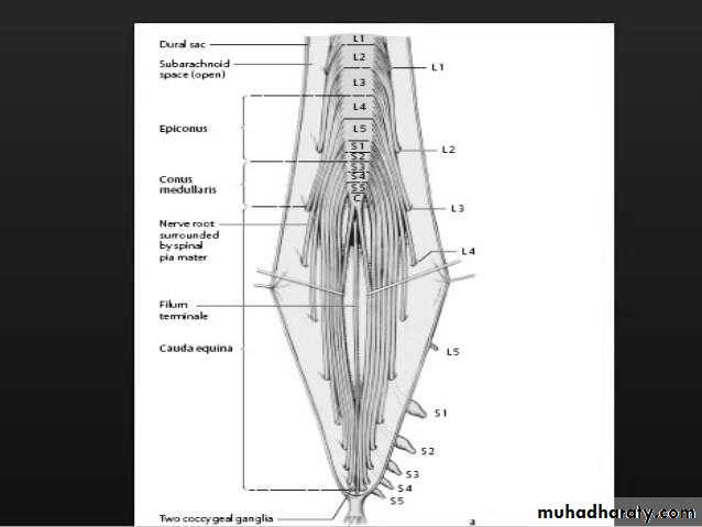 Lumbosacral roots collection fills the lower part of the spinal canal below L1