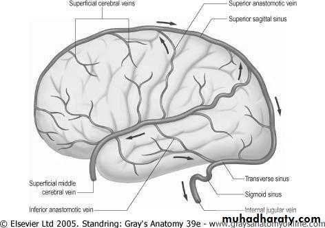 Blood drainage though deep and superfacial venous system (venous sinuses).