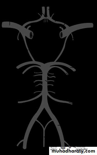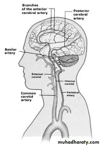 2. Posterior circulation- comprised of the paired vertebral arteries, which unite to form the basilar artery, which further divides into the paired posterior cerebral arteries