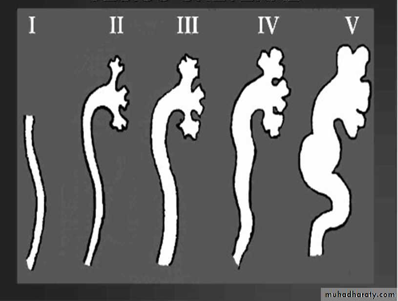 Grade 5…. The urine reach the kidney with sever dilatation and tortuosity of the ureter