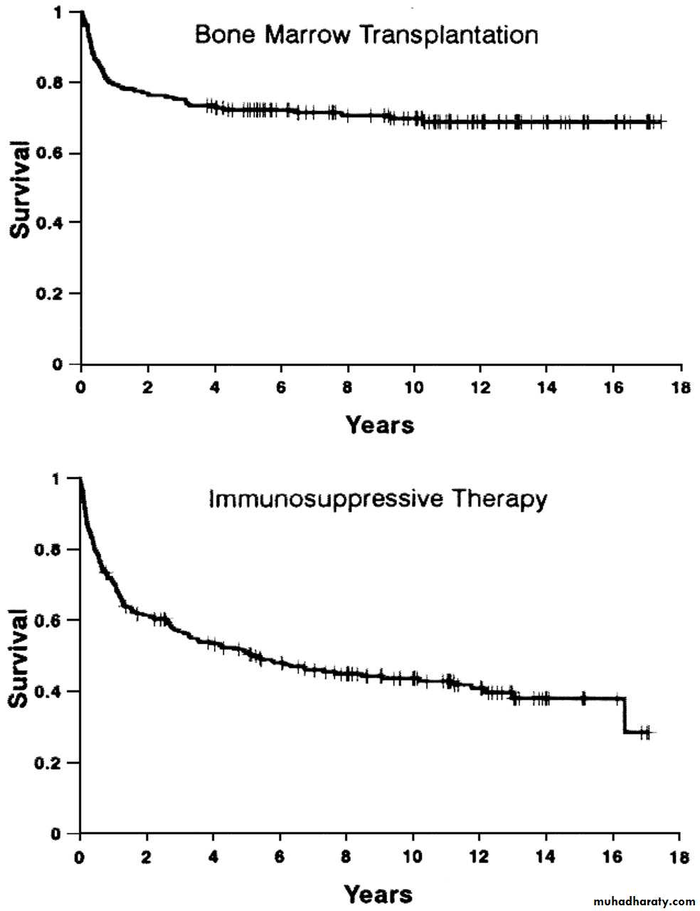 Idiopathic aplastic anemia of older patients is treated with antithymocye globulin and ciclosporin A.