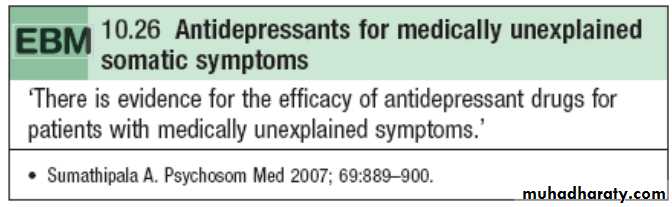 • The most frequent psychiatric dx associated with MUS are anxiety or depressive disorders. When these are absent, a dx of somatic symptom disorders may be appropriate.