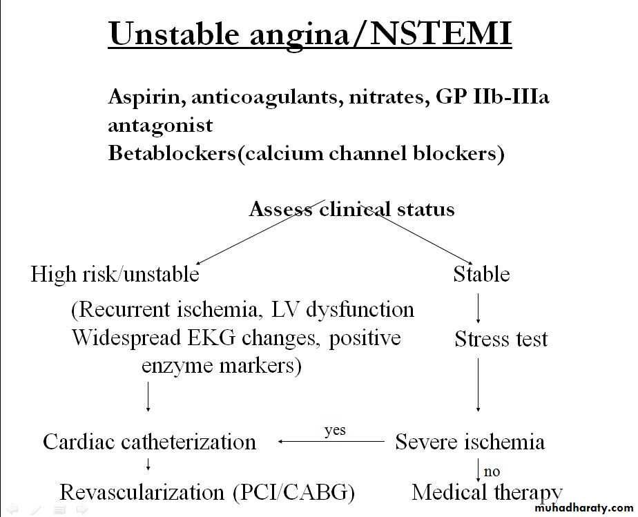 Antiplatelet therapy: Low-dose aspirin reduces the risk of adverse events such as MI and should be prescribed for all patients with coronary artery disease indefinitely .Clopidogrel (75 mg daily) is an equally effective.