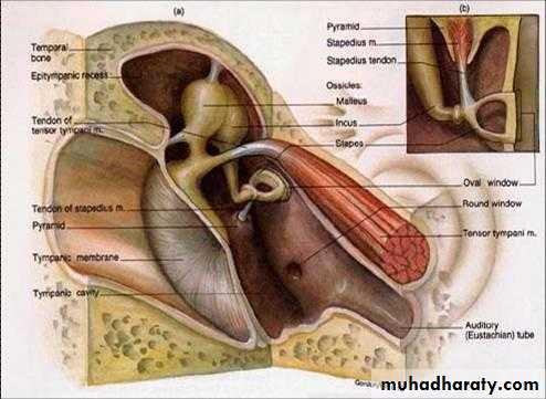 Tensor TympaniAttaches to Malleus to increase tension on ear drum & prevent damage to inner ear.