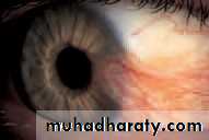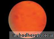 • Deep red• Sclera obscured