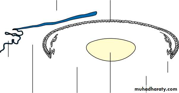 • Anteriorly, the conjunctiva is reflected from the sclera onto the underside of the upper and lower eyelids. A connective tissue layer (Tenon’s capsule) separates the conjunctiva from the sclera and is prolonged backwards as a sheath around the rectus muscles.