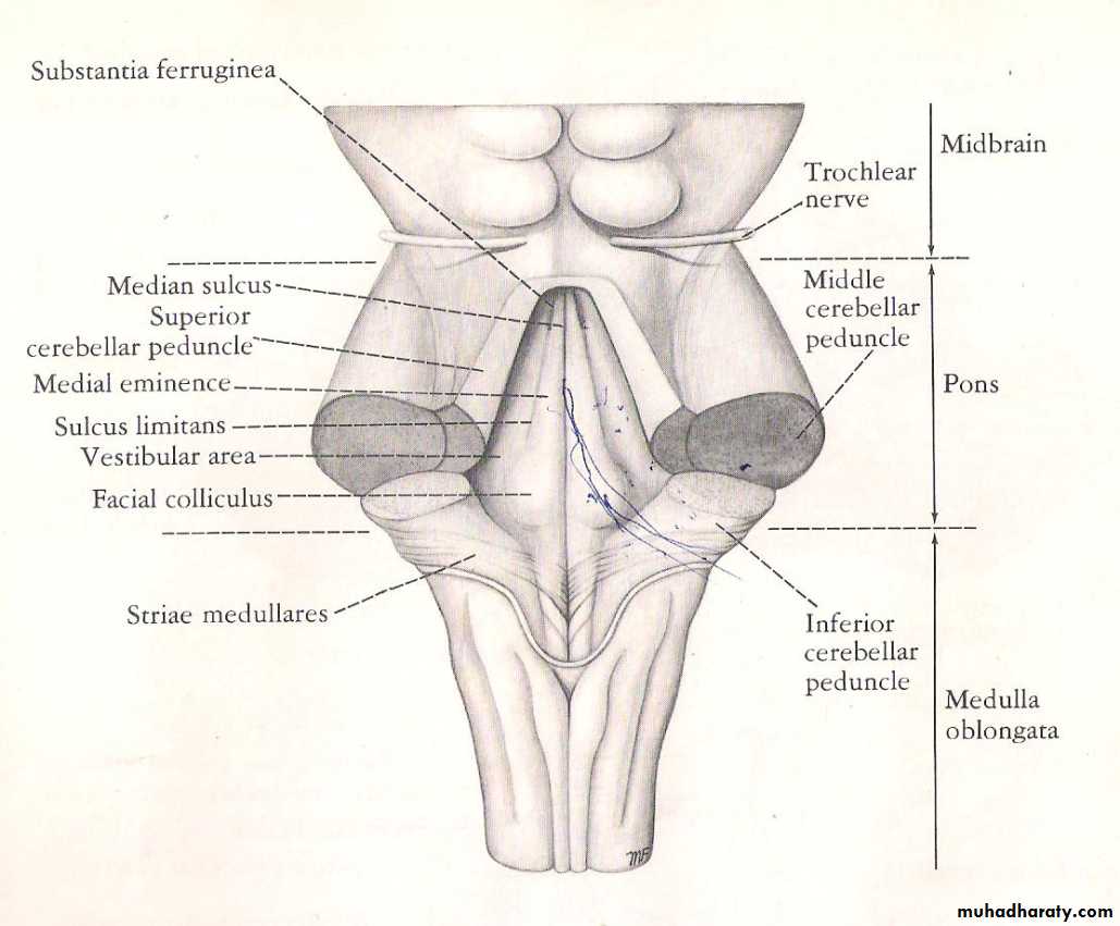 • At the lower part of the medial eminence we can see the facial colliculus contains the nucleus of the abducent nerve.