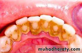Calculus: It is a hard deposit that forms by mineralization of dental plaque.