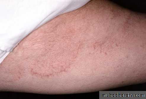 T. cruris and corporis: eryth. Scaly. With active boarder.
