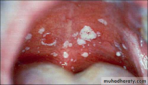 Opportunistic inf.Predisposing: age extremes, D.M, low immunity, ill fitted denture, obesity, antibiotics, pregnancy, malignancy.