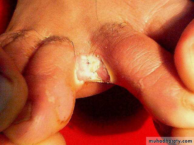Erosio interdigitale: eroded patch affects the webs