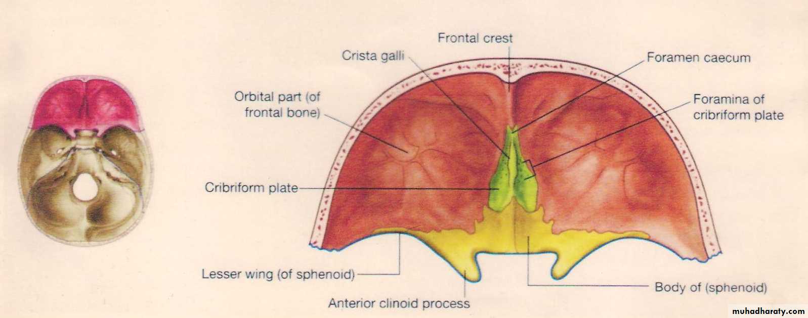 • On its inner surface runs the frontal branch of middle meningeal A. thus in any trauma and fracture of the pterion will result in tearing the wall of the artery and the accumulation of clotted blood between the dura and the inner table of the skull bone (periosteum) and known as Extradural or Epidural hematoma.