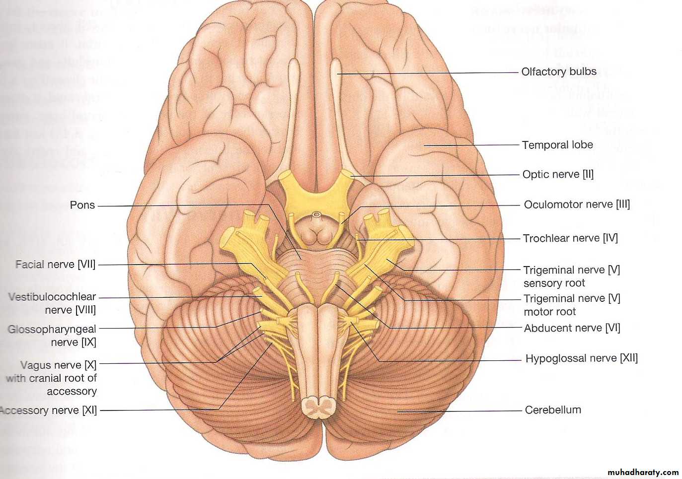 • 12- Hypoglossal nerve emerges from the medulla oblongata