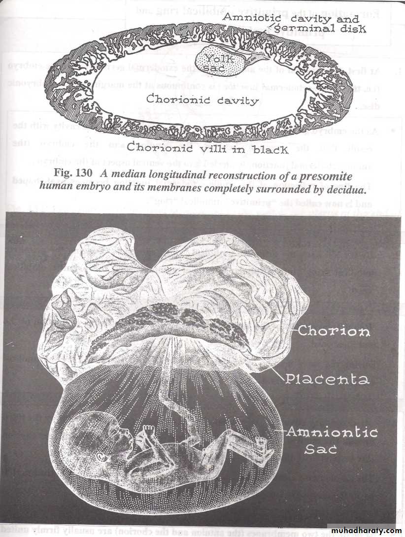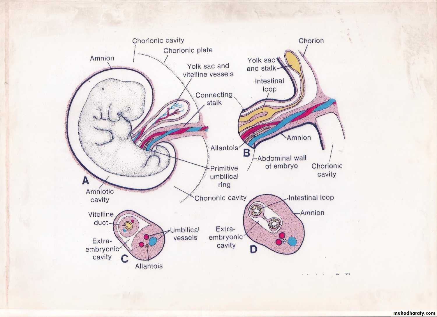 1-The first step is by the appearance of the connecting stalk.2-As the embryo grows ,the embryonic disc bulges into the