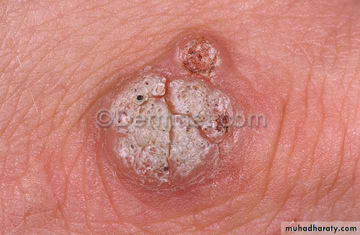 Viral Skin InfectionsViral warts and verrucas Caused by human papilloma virus Main types, common, plane and plantar Very common Disappear spontaneously eventually If treatment is needed, options include: Salicylic acid topically – needs daily treatment and cantake months Cryotherapy Imiquimod cream